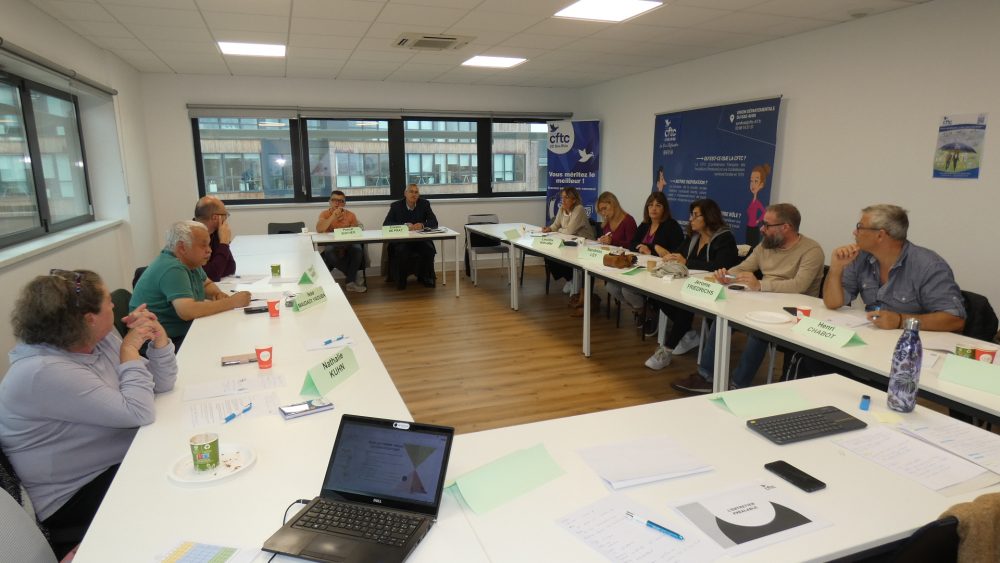 Photos de la formation Elections professionnelles qui a lieu du 29 au 30 septembre 2025 à l’Union Départementale CFTC du Bas-Rhin Partager :Cliquez pour partager sur Facebook(ouvre dans une nouvelle fenêtre)Cliquez pour partager sur Twitter(ouvre dans une nouvelle fenêtre)Cliquez pour partager sur LinkedIn(ouvre dans une nouvelle fenêtre)Cliquer pour imprimer(ouvre dans une nouvelle fenêtre)