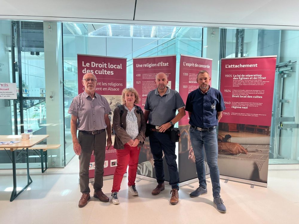 Le droit local célèbre cette semaine son centenaire, avec des colloques organisés à Strasbourg les 21 et 22 juin. Lors de ces événements, Laurent Walter, secrétaire général de la CFTC Grand Est, Antoine Fabian, Claude Wild et Caroline Wodli ont participé activement aux discussions et échanges.