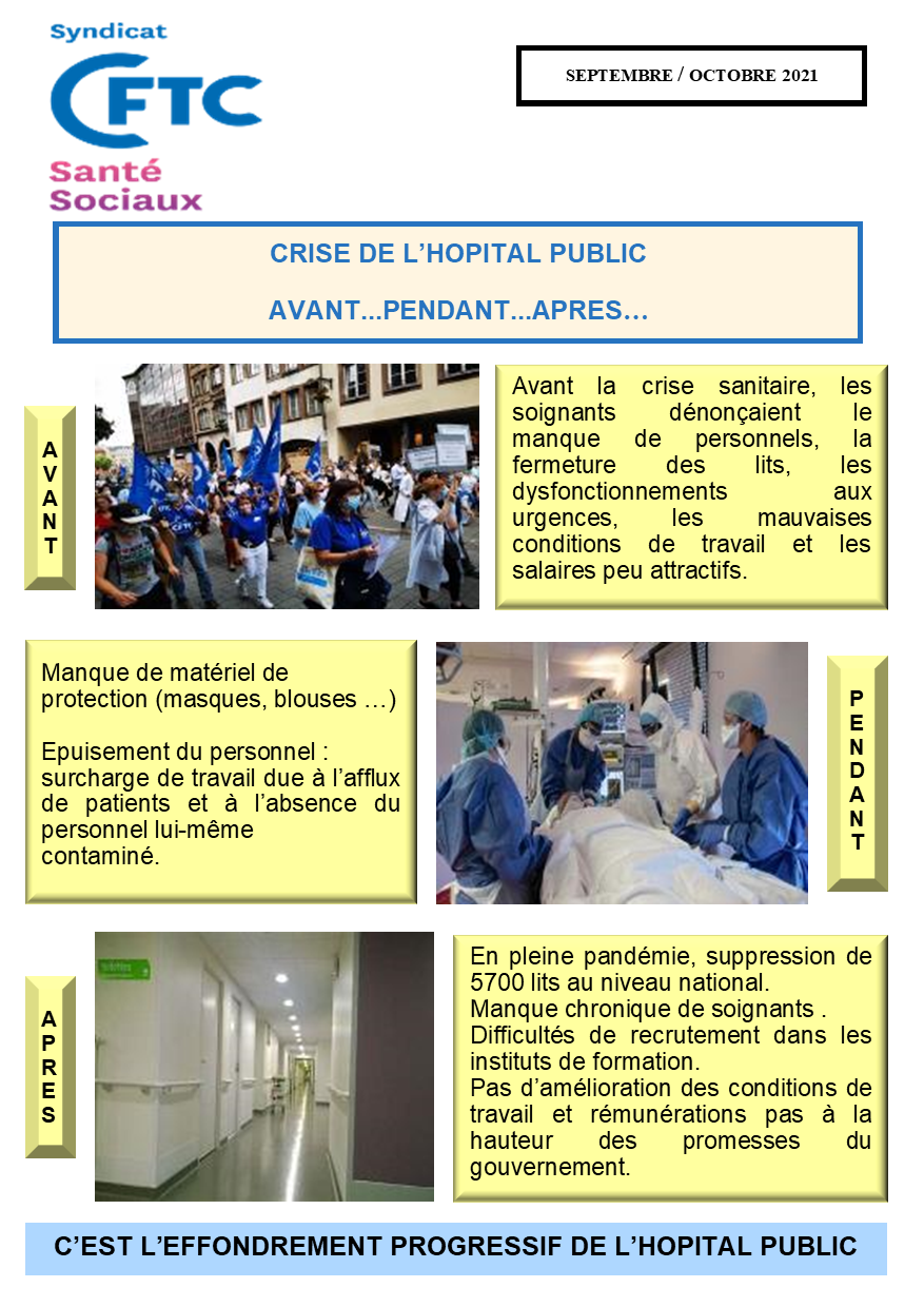 Le tract du Syndicat CFTC Santé Sociaux des mois de septembre et octobre 2021