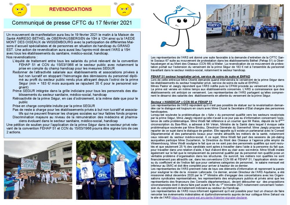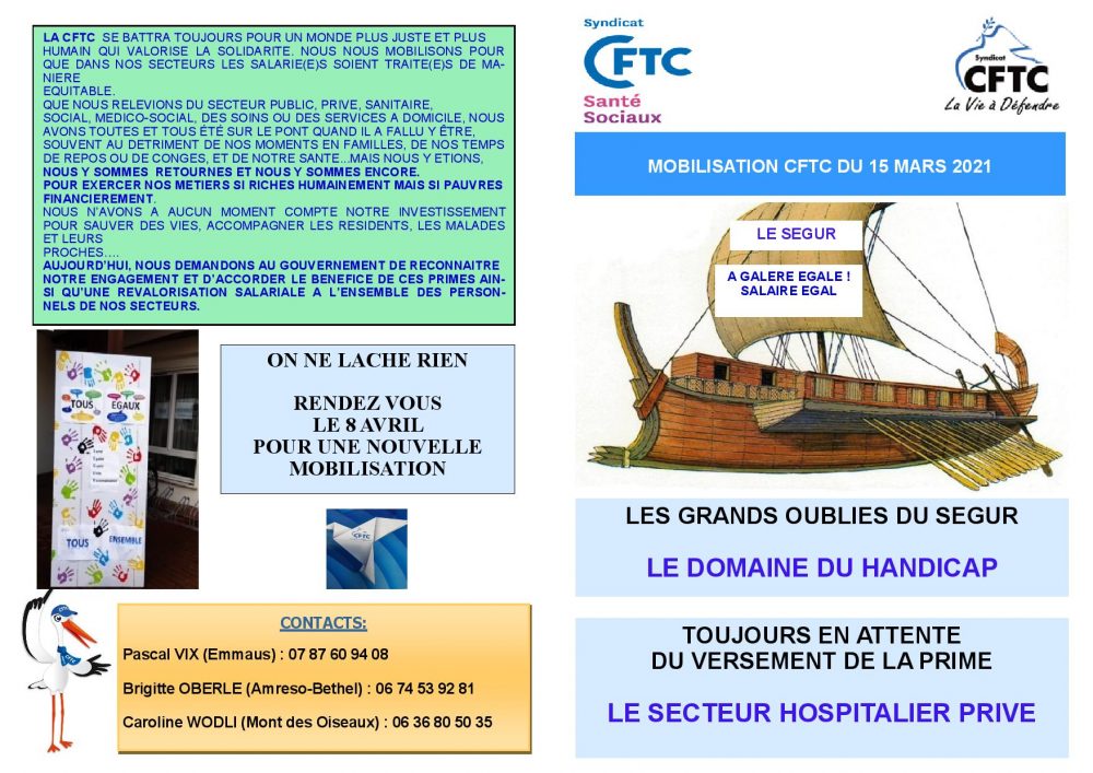 Tract du Syndicat CFTC Santé Sociaux des mois de mars et avril 2021