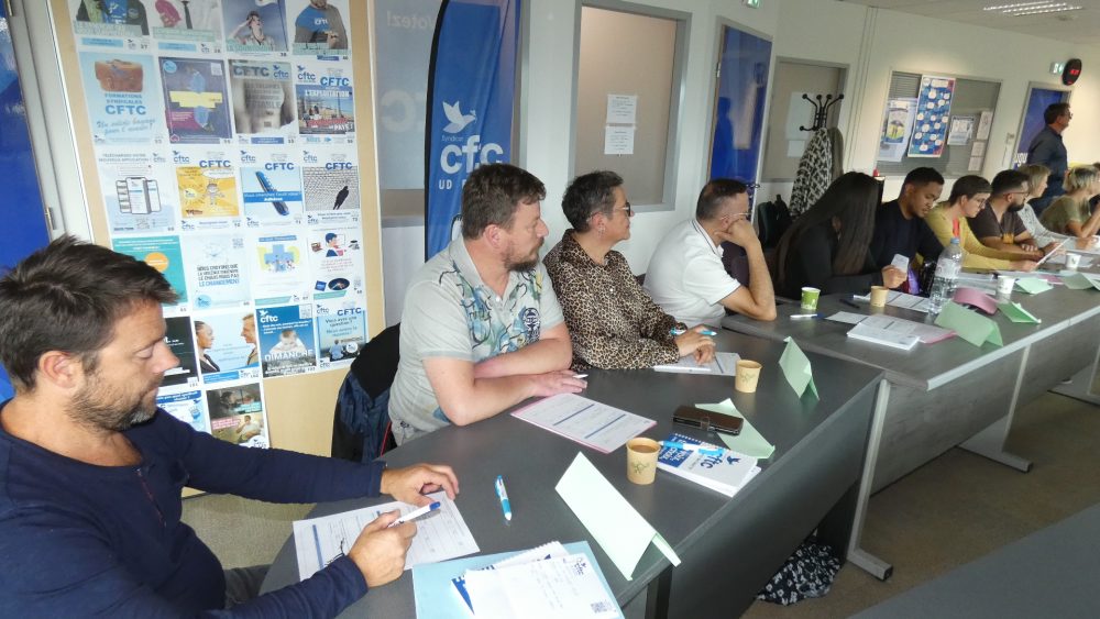 Photos de la formation CSE qui a lieu du 1er au 5 septembre 2025 à l’Union Départementale CFTC du Bas-Rhin Accueil / Actualités / Partager :Cliquez pour partager sur Facebook(ouvre dans une nouvelle fenêtre)Cliquez pour partager sur Twitter(ouvre dans une nouvelle fenêtre)Cliquez pour partager sur LinkedIn(ouvre dans une nouvelle fenêtre)Cliquer pour imprimer(ouvre dans une nouvelle fenêtre)