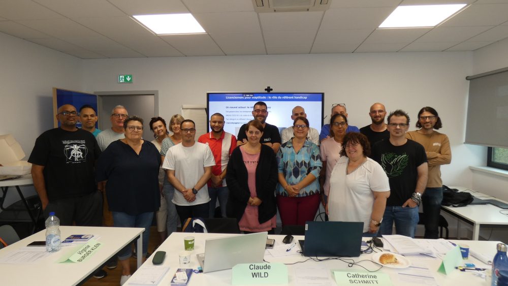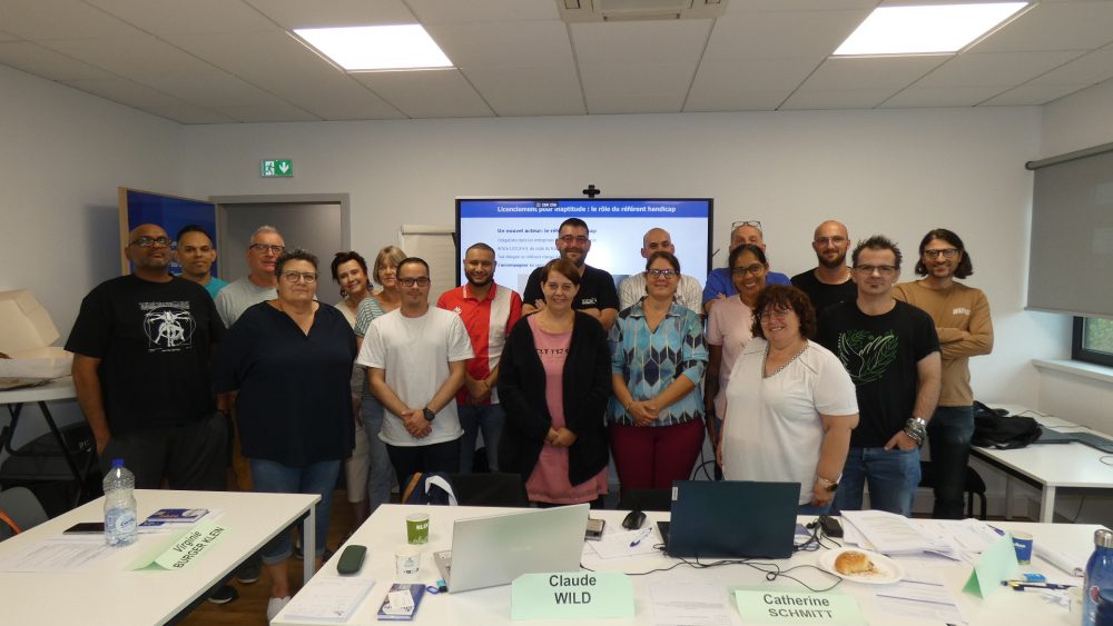 Photos de la formation Référent Handicap qui a lieu du 4 au 5 septembre 2025 à l’Union Départementale CFTC du Bas-Rhin Accueil / Actualités / Partager :Cliquez pour partager sur Facebook(ouvre dans une nouvelle fenêtre)Cliquez pour partager sur Twitter(ouvre dans une nouvelle fenêtre)Cliquez pour partager sur LinkedIn(ouvre dans une nouvelle fenêtre)Cliquer pour imprimer(ouvre dans une nouvelle fenêtre)