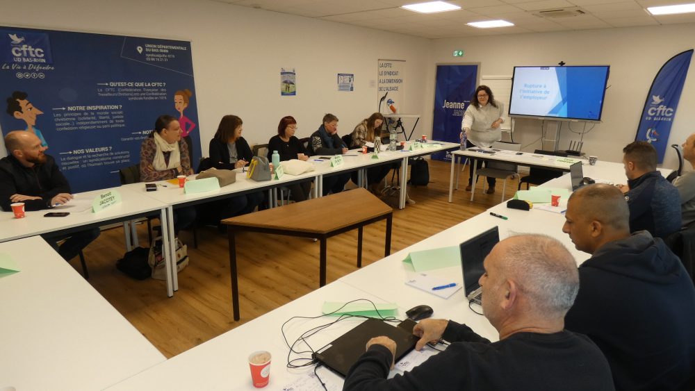 Photos de la formation Rupture du contrat de travail qui a lieu du 20 au 21 novembre 2025 à l’Union Départementale CFTC du Bas-Rhin Accueil / Actualités / Partager :Cliquez pour partager sur Facebook(ouvre dans une nouvelle fenêtre)Cliquez pour partager sur Twitter(ouvre dans une nouvelle fenêtre)Cliquez pour partager sur LinkedIn(ouvre dans une nouvelle fenêtre)Cliquer pour imprimer(ouvre dans une nouvelle fenêtre)